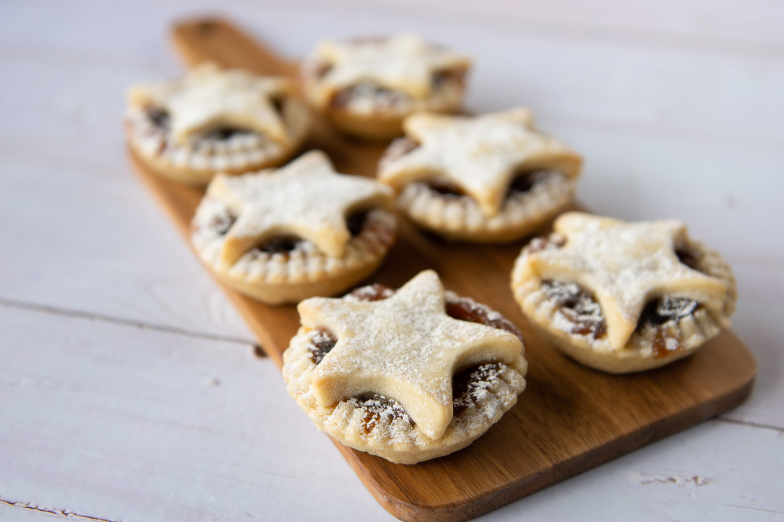FILLED MINCE PIE (SWEET FLAN (Flour (*WHEAT* Flour, Calcium Carbonate, Iron, Niacin, Thiamin), White Shortening (Vegetable Oils, (Palm Oil, Rapeseed Oil)), Sugar, Cake Margarine (Vegetable Oils (Palm Oil, Rapeseed Oil, Water, Salt, Emulsififer: Pologlycerol ester of fatty acids (E475); Flavourings; Colourings: Annatto (E160b), Curcumin (E100)), Water, Salt),) 56%, MINCEMEAT (Granulated Sugar, Sultanas, Acetic Bramley Apple Pulp (Bramley Apple Pulp, Preservative: Acetic Acid), Currants, Glucose Syrup, Glace Mixed Peel (Orange Peel, Preservatives: Glucose Fructose Syrup, Sugar, Potassium Sorbate, *SULPHUR DIOXIDE*; Lemon Peel, Acidity Regulator: Citric Acid), Shredded Non-Hydrogenated Vegetable Suet (Palm Oil, Sunflower Oil, Rice Flour), Modified Starch, Water, Mixed Spice (Coriander, Cinnamon, Ginger, Caraway, Nutmeg, Clove, Sunflower Oil), Raisins, Colour: Plain Caramel; Orange Oil.) 38%, MIXED FRUIT & PEEL (Raisins (30%) (Raisins, Sunflower Oil), Sultanas (30%) (Sultanas, Sunflower Oil), Currants (30%) (Currants, Sunflower Oil), Mixed Peel (10%) (Orange Peel, Lemon Peel, Sugar, Glucose-Fructose Syrup, Preservatives: SULPHUR DIOXIDE, Potassium Sorbate; Acidity Regulator: Citric Acid)), CHERRIES WHOLE & BROKEN (Cherries (53%), Glucose-Fructose Syrup, Sucrose, Preservatives: Potassium Sorbate, *SULPHUR DIOXIDE*; Acidity Regulator: Citric Acid; Colour: Erythrosine.), ORANGE